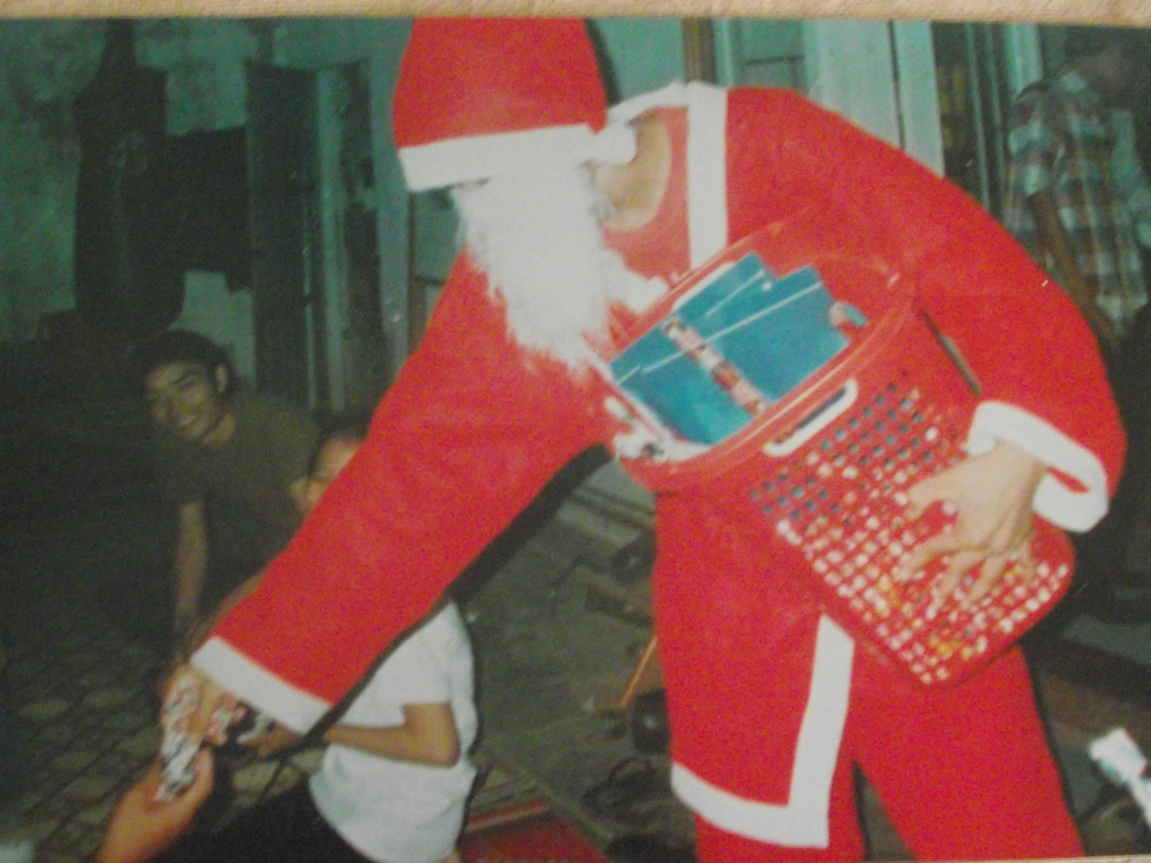 Santa (Alias Da’Vid) made a surprise visit with a knapsack full of lucky dips. The wide eyed local children peered apprehensively at their first encounter with the bearded, red-suited, mythical stranger.